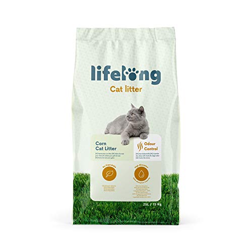 Marca Amazon - Lifelong Arena de maíz para gatos, Sin fragancia, 25L, Paquete de 1