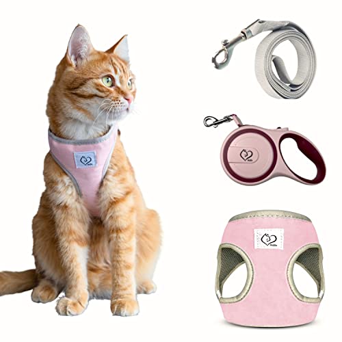 Belffy Conjunto de Arnes y Correa para Gatos con Correa Automática Ajustable para tu Mascota. Chaqueta Transpirable y Correa a Prueba de Escape para Mascotas de Diferentes Tamaños (Mediano, Rosa).