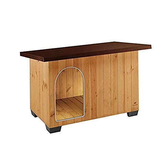 Ferplast Caseta de exterior para perros BAITA 100, Madera ecosostenible, Pies aislantes, Puerta con perfil de aluminio resistente a las mordeduras, Techo abrible, 122 x 79 x h 78 cm