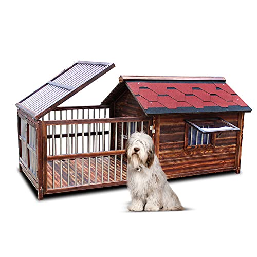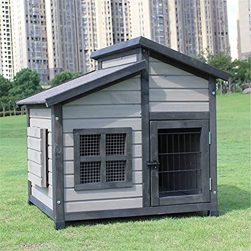 JHKGY Caseta para Perros De Madera Carbonizada CITI,Perrera De Madera Al para Mascotas,Resistente Al Agua Ventilar La Casa del Perro,Placa Inferior Extraíble con Área De Valla,Ventana Doble,L