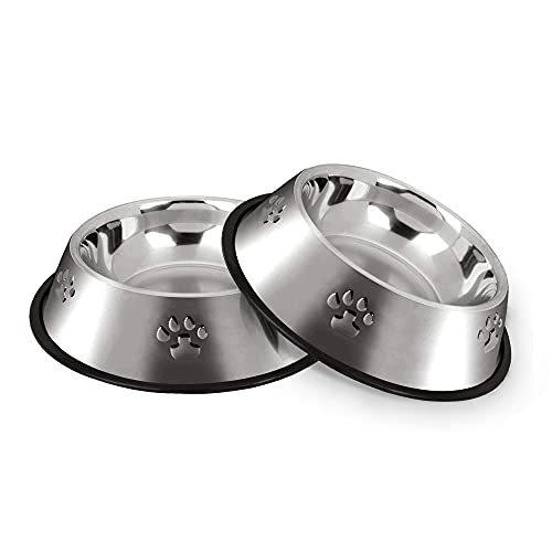 Hotype Comedero para Perro de Acero Inoxidable, Cuenco De Comida para Gatos, Comedero y Bebedero Perro Antideslizante, para Mascotas Pequeñas, 2 Unidades, 18cm
