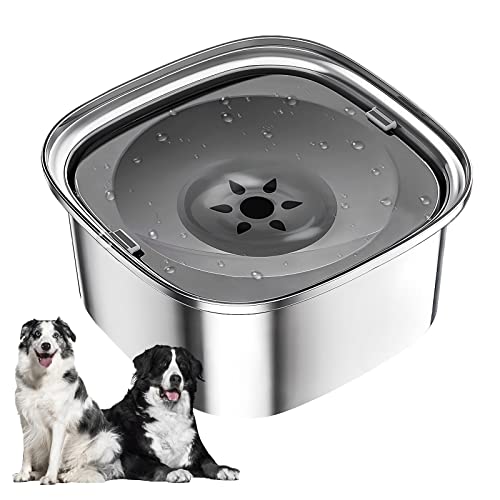Unipampa Bebedero Acero Inoxidable 3L, Bebedero Anti-Salpicaduras, Bebedero Perro Antigoteo, Tazón Flotante para Perros, Bebedero Lenta de Perros, Cuenco de Agua Flotante para Mascotas, antiasfixia
