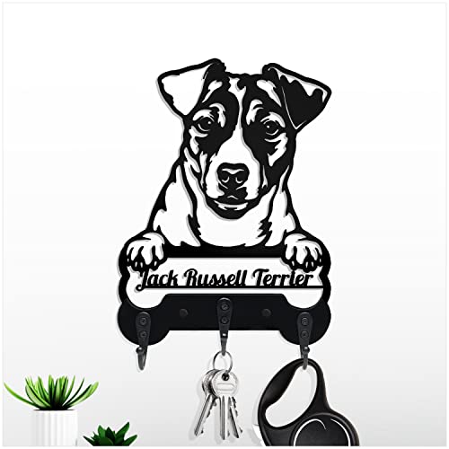 Colgador de llaves en diseño de Jack Russel Terrier con 3 ganchos de metal grandes para llaves, correa de perro, etc.