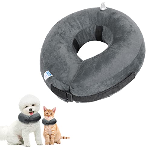 Nobleza - Collar de Recuperación Inflable para Perro Gato, Ajustable Collar Isabelino para Mascotas, Inflable Collar de Protección para Gatos Perros Recuperación de Cirugía o Heridas, Gris(S)