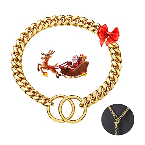 Collar Cadena de Perros de Oro, 10 mm Collares de Acero Inoxidable Ajustable al Aire Libre Entrenamiento, Correr y Camina (S-12)