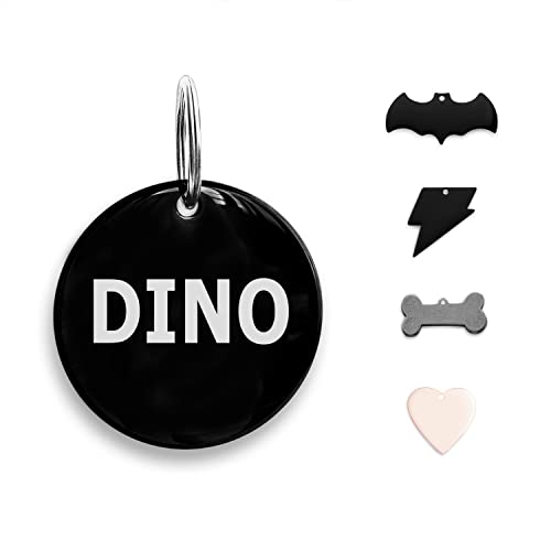Uiopa Chapa Perro Grabada, 2Pzs Etiquetas de Identificación de Mascotas Personalizadas Acero Inoxidable de Placa Chapas para Perros Gatos Mascota Collar, Grabada Nombre Número de Teléfono (Negro, L)