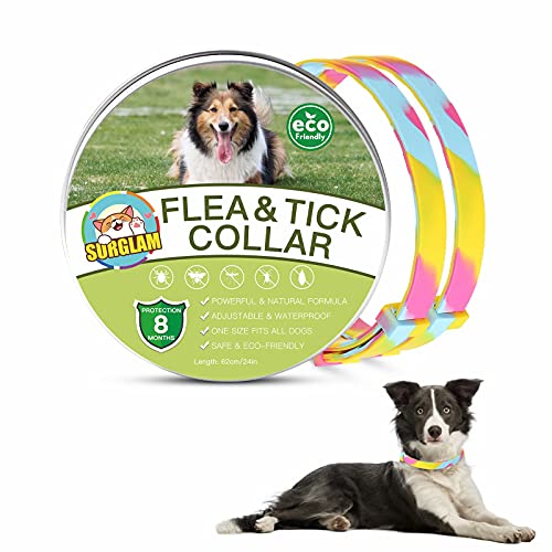 Collares Antiparasitario para Perros, Collar Antipulgas Perros, Collar De Pulgas y Garrapatas para Perro, Ajustable Impermeable 8 Meses de Protección para Perros de Todos Los Tamaños Arco Iris 2Pcs