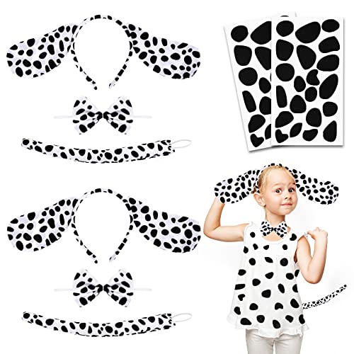 Dálmatas Disfraces de Animales,Dálmatas Diadema Orejas Pajarita Cola Papel Autoadhesivo para niños y Adultos,Disfraz Halloween Carnaval Regalos de Fiesta de Cumpleaños