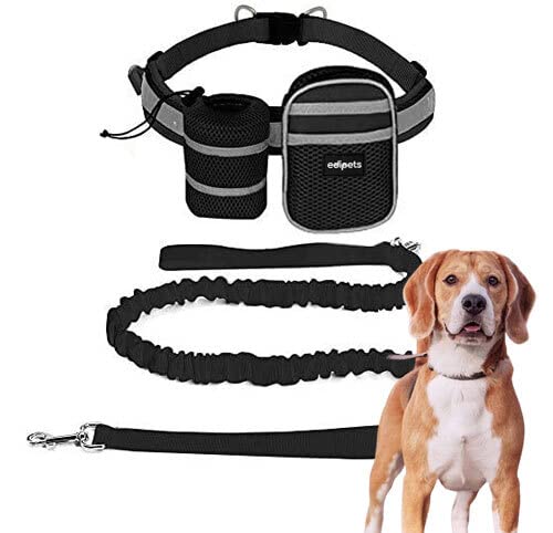 Edipets, Correa Perro para Correr, Manos Libres, Elástica, Running, para la Cintura, Antitirones, 144 a 192 cm, Andar, Bicicleta, Aire Libre, con Bolsillo y Almacenamiento (Negro)